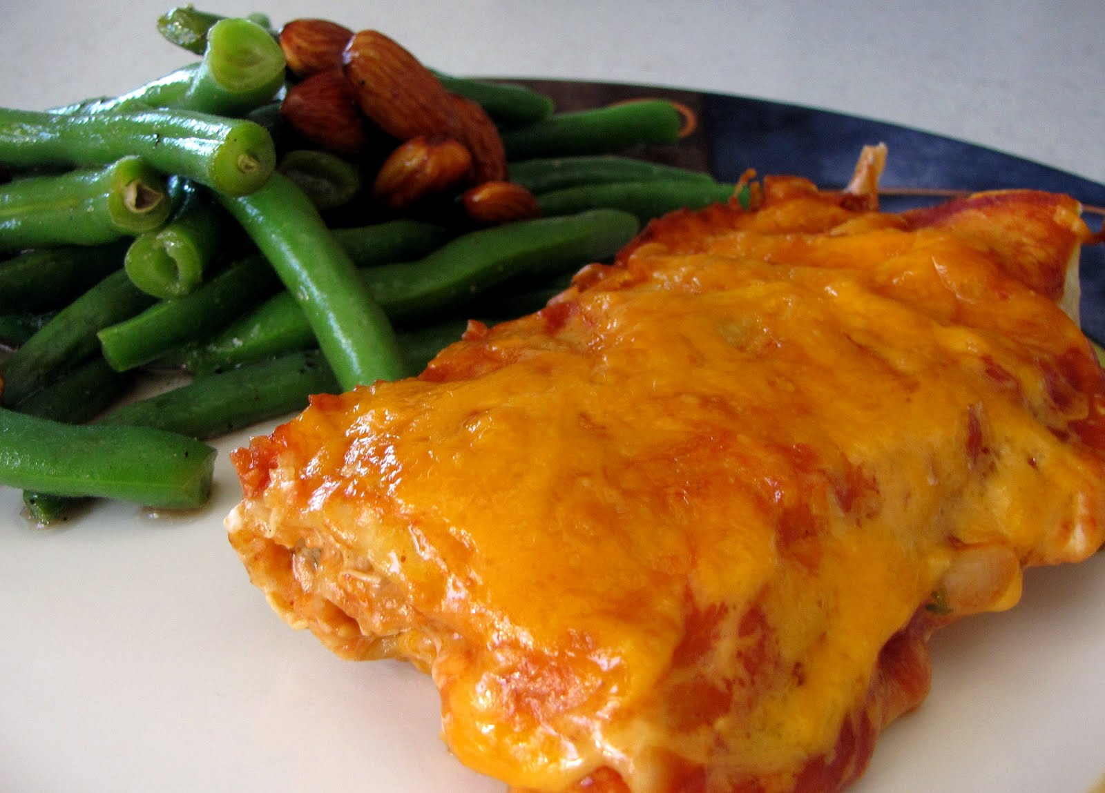Freezing directions: Prepare enchiladas as directed, but do not spread enchilada sauce or remaining cheese on top. Cover and freeze. To make, take frozen or thawed enchiladas, cover with enchilada sauce, sprinkle cheddar cheese on top, and bake in 350 F oven for 30 minutes, or until hot.